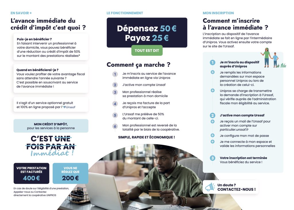 Crédit d’impôt Avance immédiate du crédit d’impôt Partager : Cliquez pour partager sur Facebook(ouvre dans une nouvelle fenêtre) Facebook Cliquer pour partager sur X(ouvre dans une nouvelle fenêtre) X